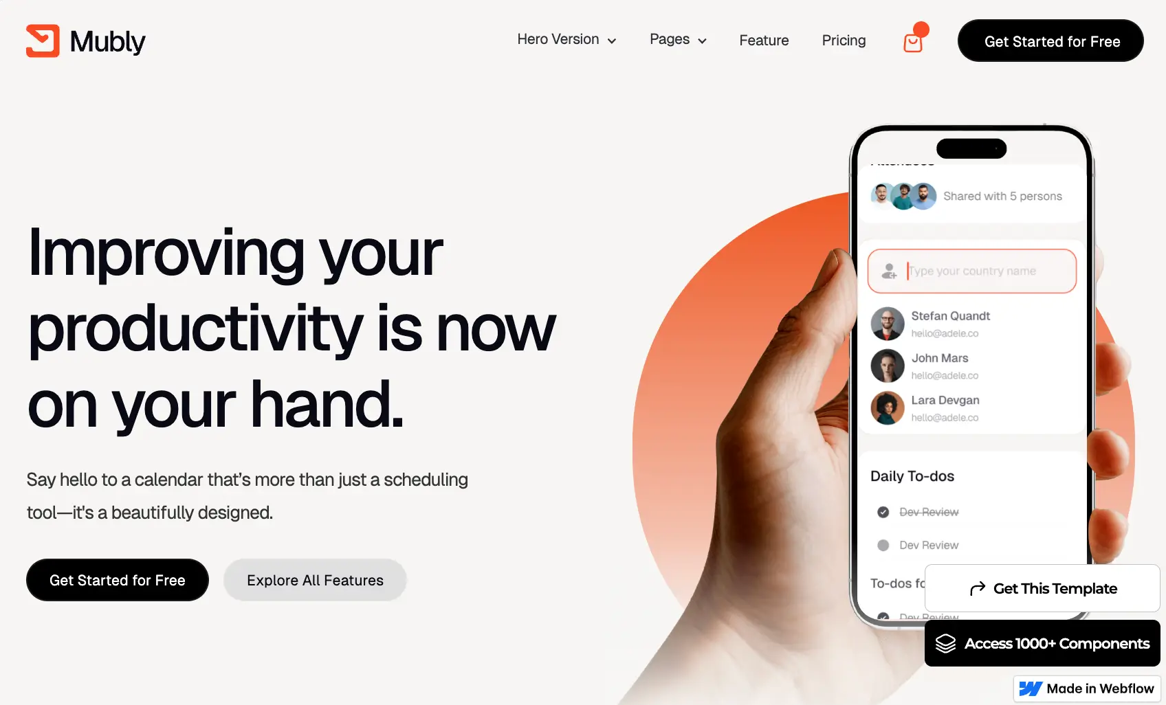 Utiliser un template n’est pas une contrainte mais un accélérateur de projet. Les modèles Webflow sont conçus par des studios de design et des développeurs spécialisés ; ils respectent les bonnes pratiques d’ergonomie, les normes de performance et s’adaptent à tous les écrans. Voici quelques raisons pour lesquelles les templates Webflow constituent un atout :